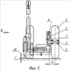 Для уменьшения сопротивления движению в случае поворота коньков ролик 56 выполнен поворотным. Это достигается установкой оси 57 на поворотном кронштейне 58, ось вращения «и» которого выполнена со смещением вперед по отношению к оси 57 ролика на величину «d» (фиг.6). Кронштейн 58 имеет в верхней части ушко 59, к которому прикреплена пружина растяжения 60, которая другим концом закреплена на стойке 61, выполненной заодно с основанием 1.