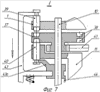44. Роликовые коньки по п.40, отличающиеся тем, что содержат шарнирно установленную опору для ноги (11), кинематически связанную по крайней мере с одним роликом (9) посредством обгонной муфты (12), при этом кинематическая связь опоры (11) для ноги с задним роликом (9) включает сдвоенную кулису (27), в одном пазу (28) которой размещен ролик (29), связанный с опорой (11) для ноги, в другом пазу (30) – ролик (31), связанный с коромыслом (32), соединенным с зубчатым сектором (36), образующим зубчатую передачу с шестерней (13), связанной с обгонной муфтой (12).