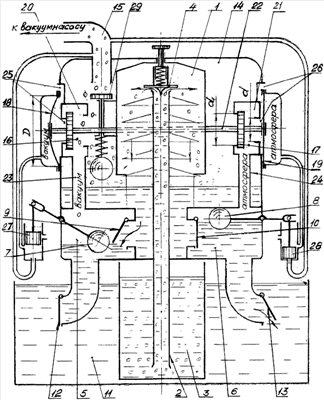 В вакуумной камере 14 напротив входа в вакуумную линию 15 расположен предохранительный поплавковый клапан 29.