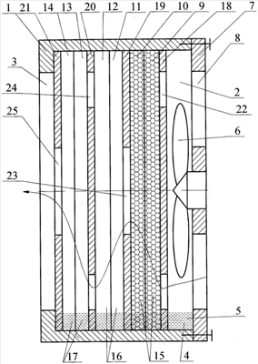 – перегородки выполнены из проницаемого для жидкости изделия с “мелкими” порами или капиллярам для заполнения жидкостью, например целлюлозы, или ткани, или войлока,