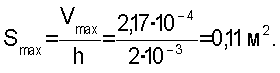 Необходимая площадь Smax осадительных электродов для осаждения такого объема частиц при предельной высоте h осаждения пыли на поверхности осадительного электрода 2 мм (2·10-3 м):
