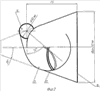 Сущность предлагаемого технического решения проиллюстрирована графическим материалом, где на фиг. 1 изображена схема устройства; на фиг.2 – конический газоход; на фиг.3 – схема изменения углов наклона витков спиралей газохода и на фиг.4 дано сечение А-А на фиг.1.