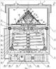 В то время как одна за другой нечетная донная створка 29 выходит из боковых пазов 48 за счет срабатывания подпружиненных 51 замков – защелок 52 с тягами 53 возвратного действия, а трубные уплотнители 50 обкатывают без заклинивания и перекрывают (по всей длине сдвигания швы между торцевыми кромками 29) другие четные донные створки 29 в совокупности представляющие с нечетными донными створками 29 побудитель конусного типа 46, который начинает совершать прямолинейные возвратно-поступательные (колебательные) движения навстречу перемещаемому потоку компонентов относительно бункера предварительного накопления 1 (дозатора). Это способствует быстрому разрыхлению с обрушением сводов исходных компонентов, причем периодически производится добавление массы в единицу времени цикла дозирование – вибрационное смешивание, а также оказывается соответствующие влияние на величину, предупреждающую отключение исполнительного механизма (конусного побудителя 46).