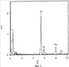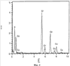 Присутствие различных никель/хром- и никель/кобальт/ хромсодержащих композиций данного изобретения четко подтверждается элементарным анализом с использованием ЭРС. На фиг.1 представлен ЭРС-спектр образца смешанного никель- и кобальтзамещенного -Cr2O3, номинально содержащего 2% ат. никеля и 3% ат. Со. Для сравнения на фиг.2 представлен ЭРС-спектр -Cr2O3 без никелевого или кобальтового замещения. На фиг.3 и 4 представлен ЭРС-спектр коммерчески доступных хромита никеля NiCr2O4 и хромита кобальта CoCr2O4, соответственно. На фиг.5 представлен ЭРС-спектр образца никельзамещенного -Cr2O3, номинально содержащего 2% ат. никеля. На каждой из указанных пяти фигур интенсивность рентгеновского излучения I, представляющая тысячи импульсов, изображена в зависимости от уровня энергии Е, представляющей тысячи электрон-Вольт (кэВ). Пики на каждом спектре соответствуют присутствию некоторых элементов.