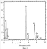 На фиг.4 представлен спектр, полученный спектроскопией с рассеянием энергии, образца кобальт-хромовой шпинели.