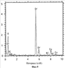 На фиг.2 представлен спектр, полученный спектроскопией с рассеянием энергии, образца альфа-оксида хрома без никелевого или кобальтового замещения.