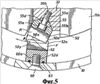 Как показано на Фиг.3 и 5, каждый зуб R имеет приблизительно V-образную форму 50, причем заостренный конец (режущая поверхность) 50х каждого зуба R входит, но с небольшим радиальным зазором, в приблизительно V-образную канавку или углубление между смежными неподвижными зубьями F, как будет показано далее. Аналогично, каждый заостренный конец 52 каждого зуба F входит, но с небольшим радиальным зазором заданной величины, в канавку или углубление между смежными вращающимися зубьями R.