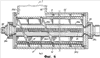 Каждая секция зубьев F, имеющая в предпочтительном варианте выполнения шесть зубьев 52 на каждом брусе 40 между торцами 40а, прикреплена к корпусу 10 болтами (винтами) 60, ввинченными своей резьбой 60а в резьбы 52d. Между корпусом и зубьями F установлено уплотнительное кольцо 63. Каждая вращающаяся секция и секция неподвижных зубьев могут быть при желании сняты с корпуса 10 для замены. Для снятия зуба R с бруса 30 вывинчивается болт 55, а для снятия зуба F с корпуса 10 вывинчивается болт 60.