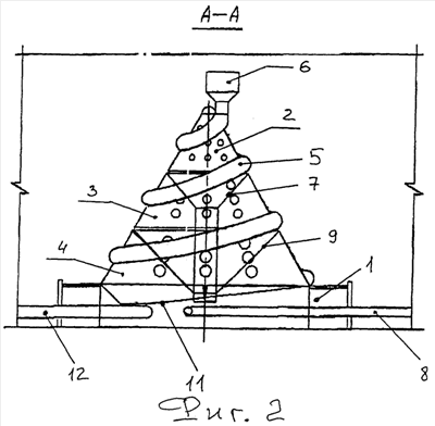 Над желобом (5) может быть предусмотрена загрузочная воронка (6).