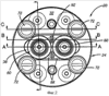 Фигура 9 – поперечный разрез Е-Е системы переформования и перепрофилирования на Фигуре 8, система показана в момент, предшествующий зацеплению;