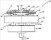 Один пример попытки решения упомянутой выше проблемы описан в патенте США №5934127, выданный Ihle («патент ‘127») в котором описано устройство для переформования нижней части емкости, использующее устройство вращения емкостей для вращения емкости при переформовании ее нижней части. В отличие от изобретения, описанного в патенте ‘127, в настоящем изобретении не требуется вращать корпус емкости, данный корпус удерживается в статичном положении при одновременном вращении устройства для выполнения переформования/перепрофилирования относительно продольной оси емкости. Данная конфигурация имеет ряд достоинств, включая то, что предлагается независимый блок, не требующий внешних упоров, рычагов или механизмов для приведения в действие инструментов для перепрофилирования или инструментов для переформования. Данный блок приводится в действие перемещением емкости в инструмент или перемещением инструмента в емкость или обоими перемещениями. Данный блок легко монтируется на существующие кромкозагибочные/переформовочные/перепрофилирующие/обжимочные станки, обычные для предприятий, производящих емкости. Удерживание корпуса емкости в статичном положении выгодно, так как транспортировать из станка вращающиеся емкости сравнительно сложно. Более того, инструменты, соответствующие настоящему изобретению, легко установить вместо существующих инструментов для переформования и перепрофилирования емкостей, в то время как устройство, описанное в патенте ‘127, требует покупки и установки абсолютно другого станка.