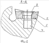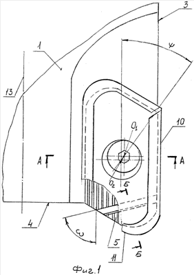 При этом боковая стенка 6 гнезда расположена на дополнительном элементе 9, а боковая опорная поверхность режущей пластины 2 – на боковой стенке соответствующего паза 12, выполненного на нижней поверхности режущей пластины. Эксцентриситет O1O2 между осями крепежного винта 7 и сквозного отверстия в режущей пластине 2 расположен под углом к рифлениям меньшим, чем угол расположения к ним паза под дополнительный элемент, т.е. < . При этом центробежные силы, действующие на режущую пластину 2 в направлении от оси 13 фрезы, стремятся сместить ее вдоль рифлений от торцовой поверхности 4 корпуса 1, т.е. в направлении действия силы от крепежного винта 7, и поджимают ее к боковой опорной стенке 6, что способствует повышению надежности крепления режущих пластин в гнездах корпуса.