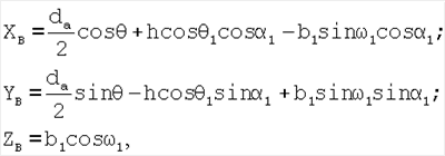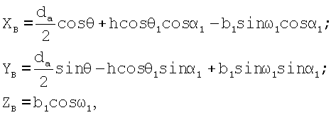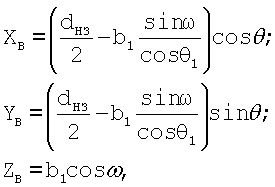 а координаты вершины фрезы относительно центра заготовки и ее переднего торца определяют по следующим зависимостям: