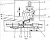 На первой стадии обработки, на которой выполняется шлифование рабочей поверхности 22, шлифовальный шпиндель 14 – после поворота вокруг первой поворотной оси 12 – занимает положение, показанное на фиг.1 и 4. В соответствии с углом при вершине конуса рабочей поверхности 22 располагается под незначительным углом и шлифовальный шпиндель, в результате чего первый шлифовальный круг 15 своей периферийной частью устанавливается, в основном, перпендикулярно шлифуемой рабочей поверхности 22.