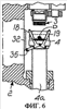 Каждый кулачок 32 имеет профиль, который составлен из наклонного участка 33, который продолжается вверх с прямой частью 34, параллельной оси A. Толкатель кулачка взаимодействует с каждым кулачком 32 и состоит из валика 35, который удерживается с возможностью вращения двумя консолями 36 и 37, которые расположены под прямым углом к соответствующим рычагам 18 и 20 относительно оси A.