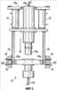 Как показано схематически на фиг.1, форма 2а и матрица 2b каждого формовочного узла 3 соединены соответственно с плитами 4, которые в свою очередь соединены друг с другом при помощи шпилек 5 с обеспечением возможности относительного их скольжения. Открытие и закрытие осуществляются при помощи поршней 6.