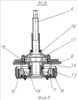 Тормозок смонтирован на опорной плите 6, закрепленной на кожухе 2 посредством болтов и гаек (на черт. не обозначены), и представляет собой конструкцию барабанно-колодочного типа. Он содержит тормозной барабан 7 с установленными внутри него двумя колодками 8, имеющими закрепленные шарнирно одни свои концы (на черт. не обозначены) и свободные другие концы 9, взаимодействующие с кулачком 10, установленным на шпонке (на черт не обозначена) своей средней цилиндрической частью 11 в отверстии рычага 12. Нижняя цилиндрическая часть (на черт не обозначена) кулачка 10 установлена в бронзовой втулке (на черт. не показана), закрепленной в отверстии, выполненном в опорной плите 6, что обеспечивает поворот кулачка 10 на 90° против часовой стрелки. Цилиндрические поверхности колодок 8 снабжены фрикционными накладками 13 для взаимодействия с внутренней цилиндрической поверхностью тормозного барабана 7 при необходимости осуществления торможения промежуточного вала 4 сцепления 3. В колодках 8 выполнено два сквозных овальных отверстия (на черт. не обозначены) для прохождения стоек-ограничителей 14. Размер овальных отверстий рассчитан исходя из длины пути колодок 8 при торможении. Стойки-ограничители 14 жестко закреплены на опорной плите 6: их концы установлены в отверстиях, выполненных в ней, и приварены к ее поверхности. Дно тормозного барабана 7 имеет центральное отверстие (на черт. не обозначено). Кулачок 10 выполнен с удлиненной головкой, имеющей с противоположных сторон округления (на черт. не обозначены), для взаимодействия со свободными концами 9 колодок 8. В кожухе 2 установлен вал 15 сцепления 3, взаимодействующий с дисками (на черт. не обозначены) последнего. На опорной плите 6 со стороны кожуха 2 установлен закрытый крышкой 16 подшипник 17 промежуточного вала 4 сцепления 3. Фланец (на черт. не обозначен) крышки 16 состыкован с фланцем (на черт. не обозначен) корпуса 18 подшипника 17, опирающимся на опорную плиту 6, а сам корпус 18 выходит с ее обратной стороны. В нем закреплена втулка 19, фланец которой (на черт. не обозначен) крепится болтами и гайками ко дну тормозного барабана 7. Втулка 19 посредством шлицевого соединения (на черт. не обозначено) прикреплена к промежуточному валу 4. Колодки 8 удерживаются возвратными пружинами 20, работающими на растяжение, от бесконтрольного размыкания.