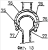 На фиг.13 и ниже: 75 – шарообразное полое окончание нижележащего звена, 76 – шарообразная решетчатая чаша вышележащего звена, 77 – круглое отверстие в чаше 76.