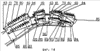 где: Фиг.1 – комбинированный летательный аппарат легче воздуха, вид спереди в правой половине и поперечный срез АА в левой половине. Фиг.2 – комбинированный летательный аппарат легче воздуха, вид сбоку. Фиг.3 – комбинированный летательный аппарат легче воздуха, вид сверху. Фиг.4 – воспринимающая часть детектора крена, боковой срез. Фиг.5 – воспринимающая часть детектора направления, вид сверху, часть шторки отсутствует.Фиг.6 – воспринимающая часть детектора направления, вид сбоку ББ. Фиг.7 – крепление спирального замыкателя 50 к оси магнитной стрелки при разомкнутом положении замыкателя. Фиг.8 – крепление спирального замыкателя 50 к оси магнитной стрелки при замкнутом положении замыкателя. Фиг.9 – увеличенный вид сбоку ГГ разомкнутого замыкателя. Фиг.10 – электрическая схема детекторов направления и крена. Фиг.11 – схема устройства движителей звена (фаланги, кисти, плеча или предплечья) манипулятора в вертикальной и горизонтальной (или фронтальной) плоскостях, вид ДД. Фиг.12 – схема устройства того же движителя звена манипулятора, вид ЕЕ. Фиг.13 – сочленение сустава манипулятора в разрезе. Фиг.14 – воспринимающее устройство сгиба пальцев и кисти. Фиг.15 – воспринимающее устройство сгиба плеча. Фиг.16 – катушка индуктивности 78 или 79, воспринимающая изгиб, в разрезе. Фиг.17 – принципиальная схема управления звеном манипулятора. Фиг.18 – схема управления зубчиком 67. Фиг.19 – палуба, вид снизу. Фиг.20 – расположение на палубе насоса для игры в аэробол. Фиг.21 – бур-плуг, вид сбоку. Фиг.22 – схема расположения буров-плугов на рамке ферм 21. Фиг.23 – схема расположения сеялок на рамке ферм 21. Фиг.24 – поперечный разрез сеялки. Фиг.25 – расположение комбайна на поперечных балках фермы 21. Фиг.26 – схема геометрического расположения тросов 33, поддерживающих аппарат на постоянной высоте. Фиг.27 – схема устройства движителя плеча или предплечья вокруг собственной продольной оси. Фиг.28 – схема устройства того же движителя плеча или предплечья, вид ЖЖ. Фиг.29 – воспринимающее устройство поворота плеча или предплечья вокруг собственной продольной оси, вид сверху. Фиг.30 – подковообразно изогнутая катушка индуктивности, воспринимающая вращение предплечья вокруг собственной оси. Фиг.31 – соединение внешнего и внутреннего слоев оболочки.