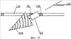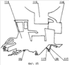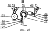На фиг.26 и ниже: 118 – передняя часть троса 33, натянутая между передним крюком-замком на столбе, врытом в землю, и аппаратом спереди, 119 – задняя часть троса 33, натянутая между задним крюком-замком на столбе, врытом в землю, и аппаратом сзади, 120 – задняя треть средней части троса 33, натянутая между колесами 34 задней половины аппарата, 121 – ненатянутая средняя треть средней части троса 33, провисающая к земле, 122 и 123 – трос при разном положении аппарата относительно земли, 124 – передняя треть средней части троса 33, натянутая между колесами 34 передней половины аппарата.