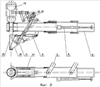 Устройства захвата-удержания и сопровождения ракет состоят из гидроцилиндров 9, коленчатых рычагов 10, подвешенных на качающихся опорах 11 и штоков 12, взаимодействующих с шарнирными опорами ракет 13.