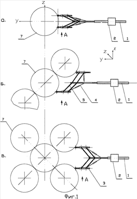 Затем приводом 2, при помощи средств управления вручную, дистанционно или автоматически программными средствами, по светоотражающим меткам на ракете 7, устанавливается продольная ось Y телескопической штанги по центру ракеты 7 на необходимом, относительно шарнирных опор ракеты 13, расстоянии по осям Х и Y.