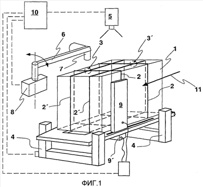 фигура 1 – схематичный вид в перспективе существенных, необходимых для осуществления способа элементов;