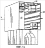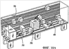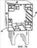 На фиг.9В подробно показан контейнер 18, входящий в контакт с направляющими 44, прикрепленными к стенке 48, при этом показаны ведомое колесо 56 и колесо 60, не приводимое в движение, которые входят в контакт с направляющими 44. Рационально то, что направляющие 44 могут быть выполнены с любой пригодной формой. Предпочтительно направляющие на верхней и нижней стенках 48 выполнены по существу “I”-образными, в то время как направляющим на боковых стенках придана такая конфигурация, что они включают в себя две по существу противолежащие “J”-образные направляющие (или “J”-образную направляющую, спаренную со “сплющенной” “Z”-образной направляющей, как показано на фиг.9B). Направляющие 44 приспособлены для соединения с соответствующими пазами 58 на контейнере 18. Также может быть предусмотрена одна или более по существу “L”-образных направляющих для создания дополнительной опорной поверхности, с которой может входить в контакт средство фиксации, такое как паз 58, и/или ведомое колесо 56, или колесо 60, не приводимое в движение.