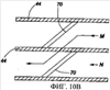 На фиг.10А показан вариант осуществления части системы 10 по настоящему изобретению, в которой контейнеры 18 могут переходить с одних направляющих 44 на другие. В показанном варианте осуществления контейнер 18 может быть перемещен на соседнюю направляющую 44 путем ввода его в контакт с одним или более переводящих устройств 70, которые направляют контейнер 18 к соседней направляющей 44. Легко можно понять, что в дополнение к варианту осуществления, рассмотренному подробно, может быть использовано и предусмотрено множество соответствующих механизмов для перевода с одних направляющих на другие. Например, предусмотрена возможность использования магнитных механизмов перевода с одних направляющих на другие, а также механизмов типа захватывающей руки, оперативно соединяемых с контейнером. Кроме того, в тех случаях, когда направляющая задана электромагнитными силами, электромагнитные силы также могут быть использованы для управления перемещением контейнера в более чем одном направлении внутри канала. Такое перемещение может быть вертикальным, горизонтальным или представлять собой комбинацию указанных перемещений с одновременным перемещением в продольном направлении в тех случаях, когда это необходимо или желательно.