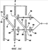 Один вариант осуществления пары переводящих устройств 70 по настоящему изобретению показан на фиг.10С, где изображена пара переводящих устройств 70, приспособленных для перевода контейнера 18, движущегося в направлении “U”, с одних направляющих 44 на другие, с которыми контейнер входит в контакт. В том случае, если желательна смена направляющих, переводящее устройство 70 перемещается в положение “S”, показанное на фиг.10С. Переводящее устройство 70 имеет вставку 72, которая по существу входит в зазор 74, образованный в направляющей 44, когда переводящее устройство перемещается в положение “S”, и которая приспособлена для направления контейнера 18 (непоказанного) на соседнюю направляющую 44. В показанном варианте осуществления часть 78 направляющей 44 отсоединена от остальной части направляющей 44 и прикреплена к ползуну 76, который приспособлен для смещения части 78 в положение, при котором она по существу выровнена относительно остальной части направляющей 44, и из данного положения. Переводящее устройство 70 также прикреплено к ползуну 76, так что при выводе части 78 из положения, при котором она выровнена, зона 80, расположенная выше по ходу перемещения и включающая в себя вставку 72, переводится в положение, при котором она будет по существу выровнена относительно направляющей 44, что позволяет переводящему устройству 70 направлять контейнер 18 (непоказанный). Зона 82 переводящего устройства 70, расположенная ниже по ходу перемещения, приспособлена для направления контейнера к новой направляющей 44. Несмотря на то что зоны переводящего устройства описаны как расположенные “выше по ходу перемещения” и “ниже по ходу перемещения”, эти описания приведены только для обеспечения простоты описания, и легко можно понять, что контейнеры 18 могут перемещаться между направляющими 44 и переводиться с одних направляющих 44 на другие при перемещении их в любом из двух направлений по переводящим устройствам 70. Например, когда переводящее устройство 70 находится в положении “S”, контейнер, движущийся в направлении “В”, контактирует с расположенной ниже по ходу перемещения зоной 82 и направляется на переводящее устройство 70, где он продолжает свое движение к расположенной выше по ходу перемещения зоне 80 и переводится на другую направляющую 44 для продолжения его движения.