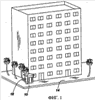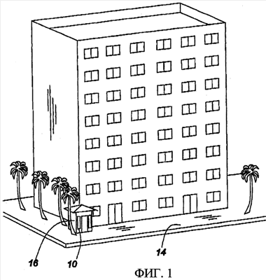 фиг.1 представляет собой перспективное изображение варианта осуществления станции общественного пользования по настоящему изобретению, показанной вблизи здания.