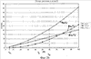 Падения давления являются функциями объемного потока, как это показано на фиг.2а и 2b для доли смешивания 50% в первом диапазоне объемных потоков от л/ч до л/ч. При 50%-ном смешивании объемный поток разделяется на две равные части и так что важные диапазоны составляют от л/ч до л/ч и от л/ч до л/ч. Поэтому кривые для и показаны только в диапазоне значений от 0 до 100 л/ч. В то время как функции и показывают квадратичную зависимость, под функцией и соответственно понимаются линейные зависимости. В основу этого примера была положена внутренняя емкость объемом 10 л.
