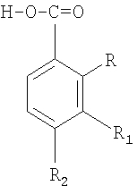 Соединением формулы (I) при R=-COOH, R1=-ОН, R2=-H является салициловая кислота.