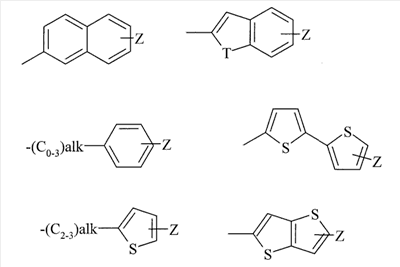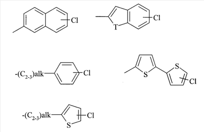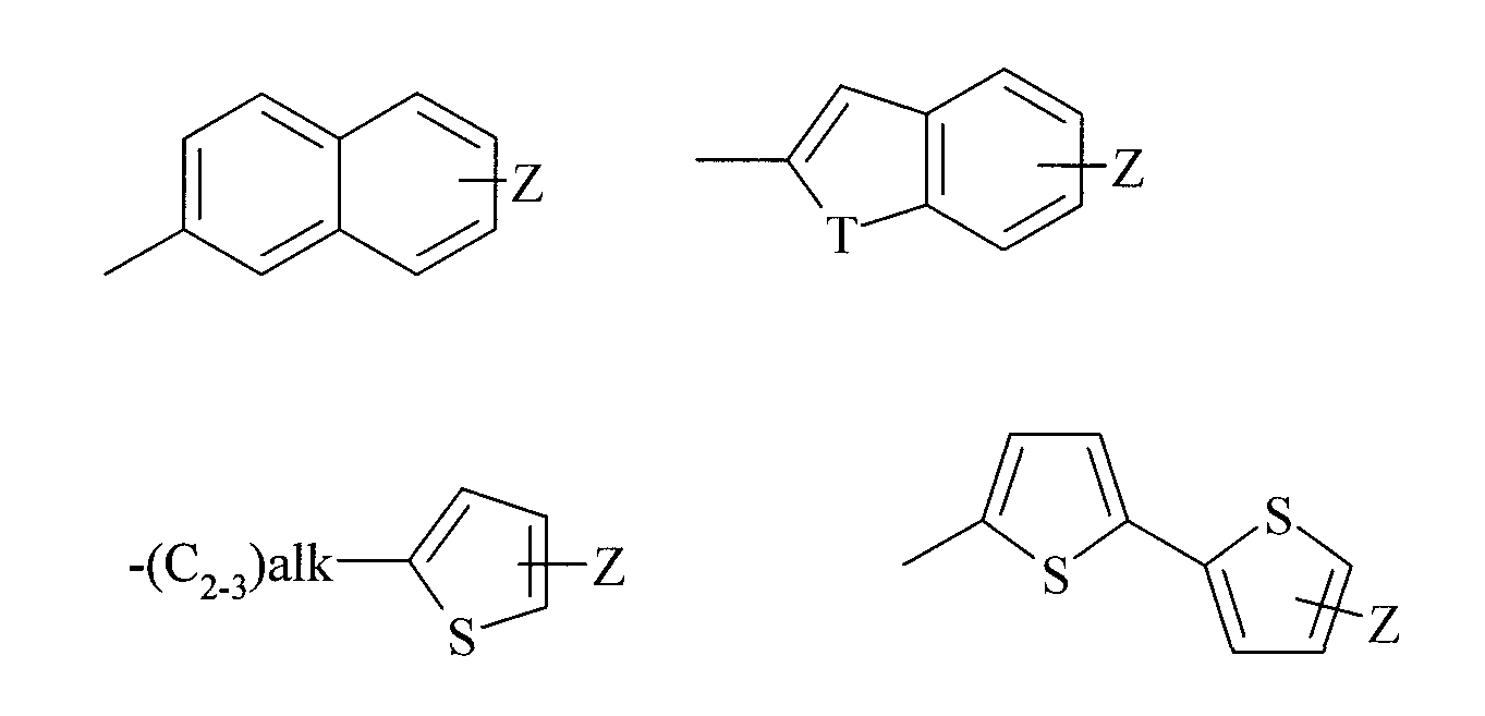 Z представляет собой необязательный заместитель галоген; Z’ представляет собой необязательный заместитель галоген; alk представляет собой алкилен или алкенилен; Т представляет собой S или О; R2 представляет собой водород, Х представляет собой фенильную или 5- или 6-членную ароматическую или неароматическую гетероциклическую группу, содержащую один или два гетероатома, выбранный из О, N или S, каждая из которых необязательно замещена 0-2 группами, выбранными из галогена, -CN, -С1-4алкила, -CF3, -NRaRb, -C(O)Rc, -C(O)NRaRb, -S(O)nRc и -S(O)2NRaRb; Y представляет собой (i) заместитель, выбранный из водорода, галогена, -CN, -С1-4алкила, -CF3, -NRaRb, -C(O)Rc, -C(O)NRaRb, S(O)nRc, -S(O)2NRaRb или (ii) фенильную или 5- или 6-членную ароматическую или неароматическую гетероциклическую группу, содержащую один или два гетероатома, выбранных из О, N или S, каждая из которых необязательно замещена 0-2 группами, выбранными из галогена, -CN, -С1-4алкила, -CF3, -(CH2)nNRaRb, -C(O)Rc, -C(O)NRaRb, -S(O)nRc, -S(O)2NRaRb; Ra и Rb независимо представляют собой водород или -С1-6алкил; Rc представляет собой -C1-6алкил; n представляет собой 0-2; и его фармацевтически приемлемые соли или сольваты. 4. Соединение по п.3, где Y представляет собой (i) заместитель, выбранный из водорода, галогена, -CN, -С1-4алкила, -CF3, -NRaRb, -C(O)Rc, -C(O)NRaRb, -S(O)nRc или -S(O)2NRaRb; (ii) фенильную группу, необязательно замещенную 0-2 группами, выбранными из галогена, -CN, -С1-4алкила, -CF3, (CH2)nNRaRb, -C(O)Rc, -C(O)NRaRb, -S(O)nRc, и S(O)2NRaRb, (iii) 5- или 6-членную ароматическую или неароматическую гетероциклическую группу, содержащую один или два гетероатома, выбранных из О, N или S, каждая из которых замещена группой, выбранной из -S(O)nRc, -S(O)2NRaRb, или (iv) когда R1 представляет собой