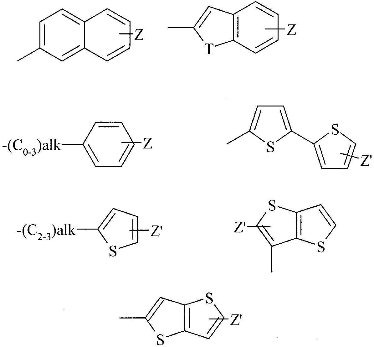 каждая из которых необязательно содержит дополнительный гетероатом N; Z представляет собой необязательный заместитель галоген, -CH2NH2, -NRaRb или -CN; Z’ представляет собой необязательный заместитель галоген, -CH2NH2 или -CN; alk представляет собой алкилен или алкенилен; Т представляет собой S или О; R2 представляет собой водород, -С1-3алкилCONRaRb, -C1-3алкилCO2C1-4алкил, -C1-3алкилморфолино, -CO2С1-4алкил или -С1-3алкилCO2Н; Х представляет собой фенильную или 5- или 6-членную ароматическую или неароматическую гетероциклическую группу, содержащую один или два гетероатома, выбранный из О, N или S, каждая из которых необязательно замещена 0-2 группами, выбранными из галогена, -CN, -С1-4алкила, -С2-4алкенила, -CF3, -NRaRb, -NO2, -N(C1-4алкил) (СНО), -NHCOC1-4алкила, -NHSO2Rc, С0-4алкилORd, -C(O)Rc, -C(O)NRaRb, -S(O)nRc и -S(O)2NRaRb; Y представляет собой (i) заместитель, выбранный из водорода, галогена, -CN, -С1-4алкила, -С2-4алкенила, -CF3, -NRaRb, -NO2, N(C1-4алкил) (СНО), -NHCOC1-4алкила, -NHSO2Rc, С0-4алкилORd, -C(O)Rc, -C(O)NRaRb, -S(O)nRc и -S(O)2NRaRb, или (ii) фенильную или 5- или 6-членную ароматическую или неароматическую гетероциклическую группу, содержащую один или два гетероатома, выбранных из О, N или S, каждая из которых необязательно замещена 0-2 группами, выбранными из галогена, -CN, -С1-4алкила, -CF3, – (CH2)nNRaRb, (CH2)nN+RaRbCH2CONH2, С0-4алкилORd, -С(O)Rc, -C(O)NRaRb, -S(O)nRc, -S(O)2NRaRb, =O, оксида у атома N в цикле, -СНО, -NO2 и -N(Ra)(SO2Rc); Ra и Rb независимо представляют собой водород или -С1-6алкил; Rc представляет собой -C1-6алкил; Rd представляет собой водород или -С1-6алкил; n представляет собой 0-2; и его фармацевтически приемлемые соли или сольваты. 2. Соединение по п.1, где Y представляет собой (i) заместитель, выбранный из водорода, галогена, -CN, -С1-4алкила, -С2-4алкенила, -CF3, -NRaRb, -NO2, -N(C1-4алкил)(CHO), -NHCOC1-4алкила, -NHSO2Rc, C0-4aлкилORd, -C(O)Rc, -C(O)NRaRb, -S(O)nRc или -S(O)2NRaRb, (ii) фенильную группу, необязательно замещенную 0-2 группами, выбранными из галогена, -CN, -С1-4алкила, -CF3, -(CH2)nNRaRb, С0-4алкилORd, -C(O)Rc, -C(O)NRaRb, -S(O)nRc, S(O)2NRaRb, -СНО, -NO2 и N(Ra)(SO2Rc), (iii) 5- или 6-членную ароматическую или неароматическую гетероциклическую группу, содержащую один или два гетероатома, выбранных из О, N или S, каждая из которых замещена группой, выбранной из S(O)nRc, -S(O)2NRaRb, -NO2 или N(Ra)(SO2Rc), или, (iv) когда R1 представляет собой
