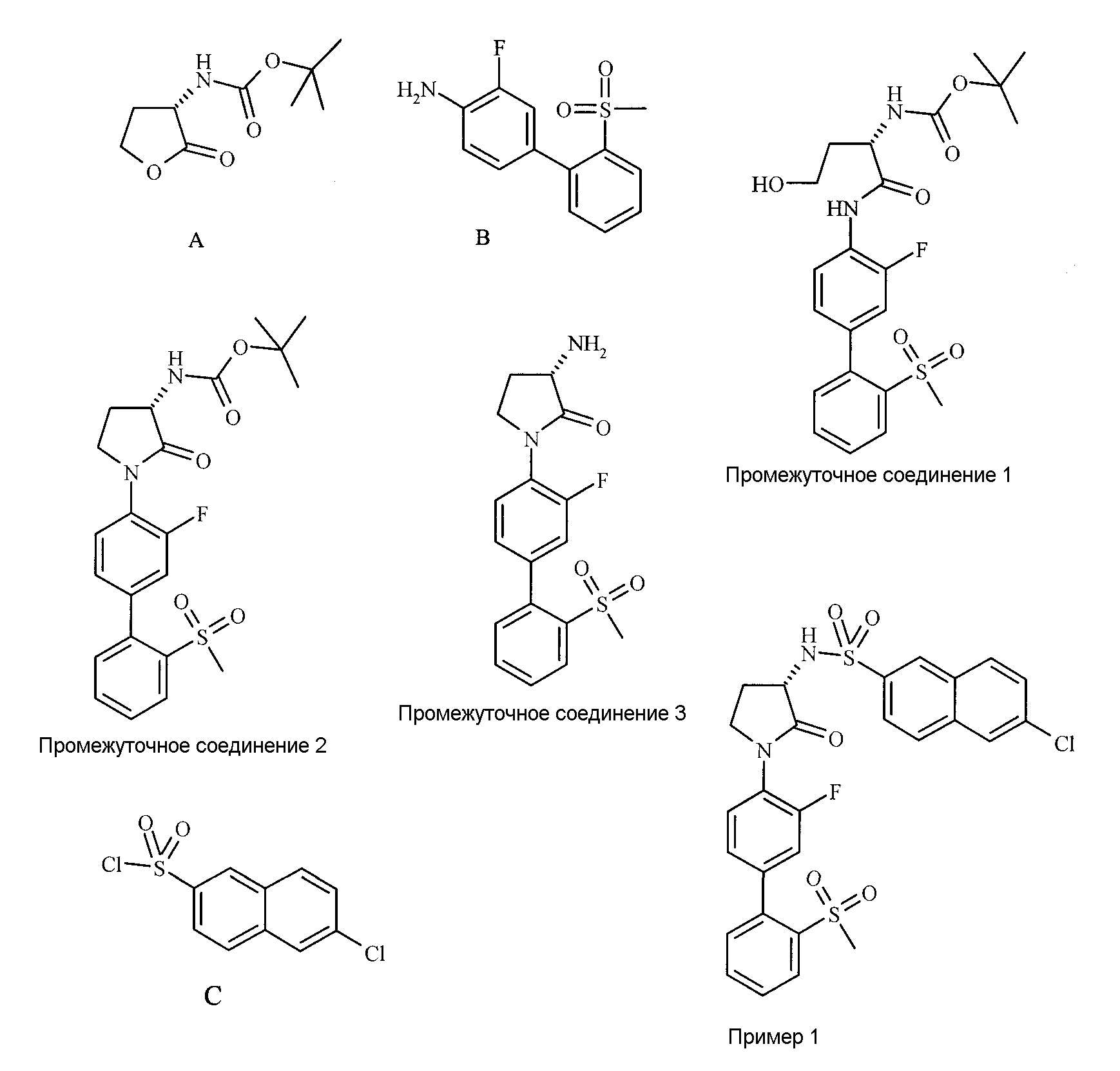 -бензилоксикарбонил-D-Arg-Gly-Arg-п-нитроанилид в качестве хромогенного субстрата. Соединения в виде стандартного 10 мМ раствора в диметилсульфоксиде разбавляют до соответствующих концентраций. Анализ осуществляют при комнатной температуре, используя буфер, состоящий из: 50 мМ Tris-HCl, 150 мМ NaCl, 5 мМ CaCl2, рН 7,4, содержащий фактор Ха человека (конечная концентрация 0,0015 Ед·мл-1). Соединения и фермент предварительно инкубируют в течение 15 мин перед прибавлением субстрата (конечная концентрация 200 мкМ). Реакцию прекращают через 30 мин добавлением соевого ингибитора трипсина или H-D-PHE-PRO-ARG-хлорметилкетона. Планшет-ридеры BioTek EL340 или Tecan Spectrafluoro Plus используют для мониторинга поглощения при 405 нм. Для получения значений IC50 данные анализируют с помощью ActivityBase® и XLfit®.