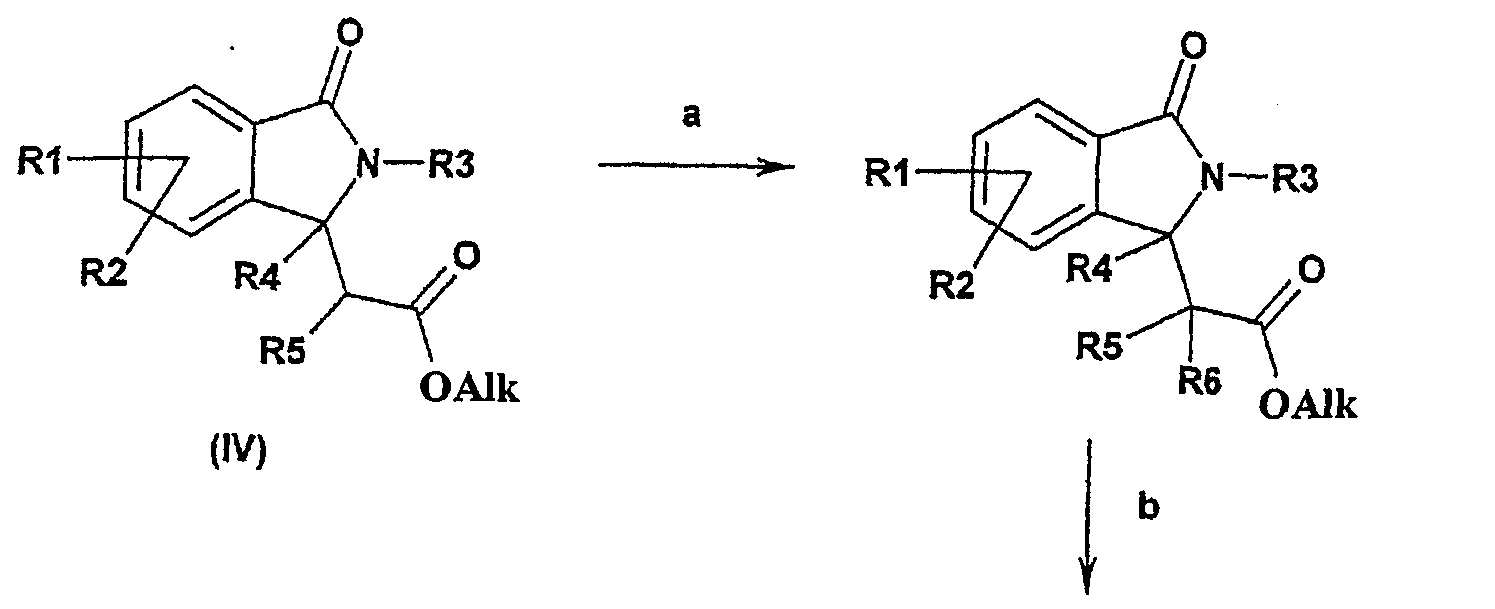 b) полученный продукт подвергают взаимодействию с амином формулы R3NH2 (R3 имеет такие же значения, как определено в любом из пп.1-5) и карбодиимидом; c) полученный продукт подвергают взаимодействию с гуанидинийхлоридом и основанием, или с гуанидином, например, в спирте, имеющем 1, 2, 3 или 4 атома углерода. 16. Способ получения соединений формулы I по любому из пп.1-5, где R4 представляет собой алкил и R6 представляет собой водород, отличающийся тем, что a) фталимид (формулы II, как определено в п.14) подвергают взаимодействию с алкилмагнийгалогенидом или алкиллитиевым реагентом в простом эфире; b) полученный продукт затем подвергают взаимодействию с алкоксикарбонилметилентрифенилфосфораном в толуоле или с 1-этокси-!-триметилсилоксиэтиленом и кислотой Льюиса; c) полученный продукт подвергают взаимодействию с гуанидинийхлоридом и основанием, или с гуанидином, например в спирте, имеющем 1, 2, 3 или 4 атома углерода. 17. Способ получения соединений формулы I по любому из пп.1-5, где R6 представляет собой алкил, отличающийся тем, что а) соединение формулы IV (R1-R5 имеют такие же значения, как определено в пп.1-5) подвергают взаимодействию в присутствии литийдиизопропиламида с R6-Hal, где Hal представляет собой F, Cl, Br или I