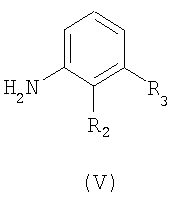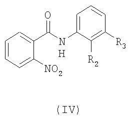 где R2 и R3 имеют значения, приведенные для формулы I. Предпочтительно восстановление происходит в присутствии подходящего восстанавливающего агента, такого как двухлористое олово или водород в присутствии соответствующего катализатора, такого как Ni-Ренея (тогда предпочтительно водород применяется по давлением, например, между 2 и 20 бар), или PtO2, в соответствующем растворителе, например спирте, таком как метанол. Температура реакции предпочтительно находится между 0°С и 80°С, особенно 15-30°С. Нитросоединение формулы IV доступно по реакции активированного производного кислоты формулы VI