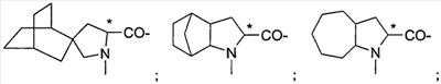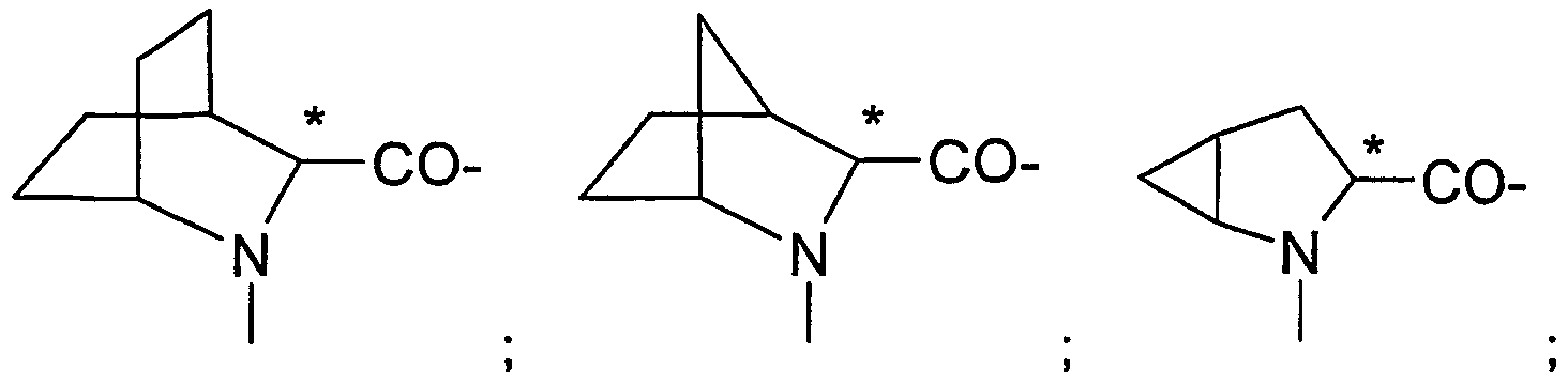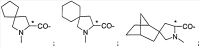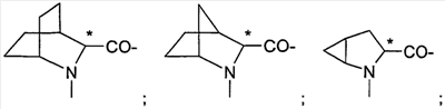 Бициклоалкильные остатки и трициклоалкильные остатки и 6-членные-24-членные бициклические и трициклические остатки, которые представляют R16, формально получают удалением атома водорода из бициклов и трициклов, соответственно. Лежащие в основе бициклы и трициклы могут содержать только атомы углерода в качестве членов кольца, то есть они могут представлять бициклоалканы или трициклоалканы, или они могут, в случае остатков, которые представляют R16, также содержать от одного до четырех одинаковых или различных кольцевых гетероатомов из ряда азота, кислорода и серы, то есть они могут представлять аза-, окса- и тиабициклоалканы и -трициклоалканы. Когда кольцевые гетероатомы присутствуют, предпочтительно присутствует один или два кольцевых гетероатома, в частности атома азота или атома кислорода. Кольцевые гетероатомы могут занимать любые желательные положения в бициклической или трициклической системе; они могут присутствовать в мостиках остатка или, в случае атомов азота, также в головных частях мостиков. И бициклоалканы, и трициклоалканы, а также их гетероаналоги могут быть полностью насыщенными или содержать одну или более двойных связей. Предпочтительно, они являются полностью насыщенными или содержат одну или две двойные связи; особенно предпочтительно, они являются полностью насыщенными. И бициклоалканы, и трициклоалканы, а также гетероаналоги, и насыщенные, и ненасыщенные представители могут быть незамещенными, или они могут быть замещены в любом желательном и подходящем положениях одной или более оксогруппами и/или одной или более, например одной, двумя, тремя или четырьмя, одинаковыми или различными (C1-C4)-алкильными группами, например метильными группами и/или изопропильными группами, предпочтительно метильными группами. Свободная связь бициклического или трициклического остатка может быть расположена в любом произвольном положении в молекуле; остаток может, следовательно, быть связан через атом головной части мостика или атом в мостике остатка. Свободная связь может быть расположена в любом стереохимическом положении, например в экзоположении или эндоположении.Примерами родительских бициклических кольцевых систем, из которых может быть получен бициклический остаток, являются норборнан (=бицикло[2.2.1]гептан), бицикло[2.2.2]октан и бицикло[3.2.1]октан; примерами ненасыщенных систем, или замещенных систем, или систем, которые содержат гетероатомы, являются 7-азабицикло[2.2.1]гептан, бицикло[2.2.2]окт-5-ен и камфора (=1,7,7-триметил-2-оксобицикло[2.2.1]гептан).