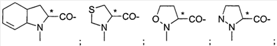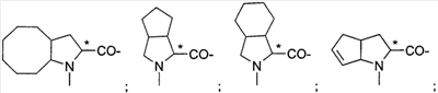 R6 представляет остаток природной или неприродной аминокислоты, остаток иминокислоты, остаток необязательно N-(C1-C8)-алкилированной или N-((C6-C14)-арил-(C1-C8)-алкилированной) азааминокислоты, где арильный остаток может быть необязательно замещен, или представляет остаток дипептида, трипептида или тетрапептида, или их сложный эфир или амид, где функциональные группы могут быть защищены защитными группами и где атомы азота в амидных группах группы R6-CO могут нести остаток R в качестве заместителя;