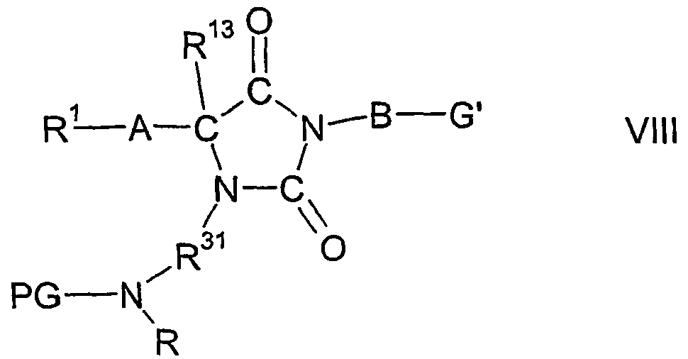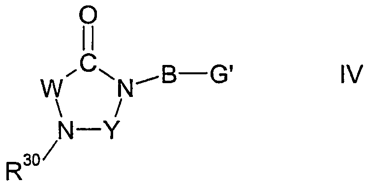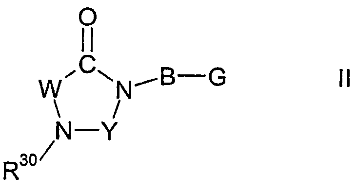 при восстановительном аминировании, где в формулах II и III группы В, Е, W, Y, R, R2, R3 и R30 и е и h определены, как указано в пп.1-4, или, кроме того, функциональные группы могут присутствовать в данных группах в защищенной форме, и группа G представляет альдегидную группу СНО.