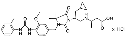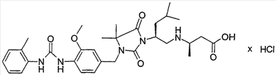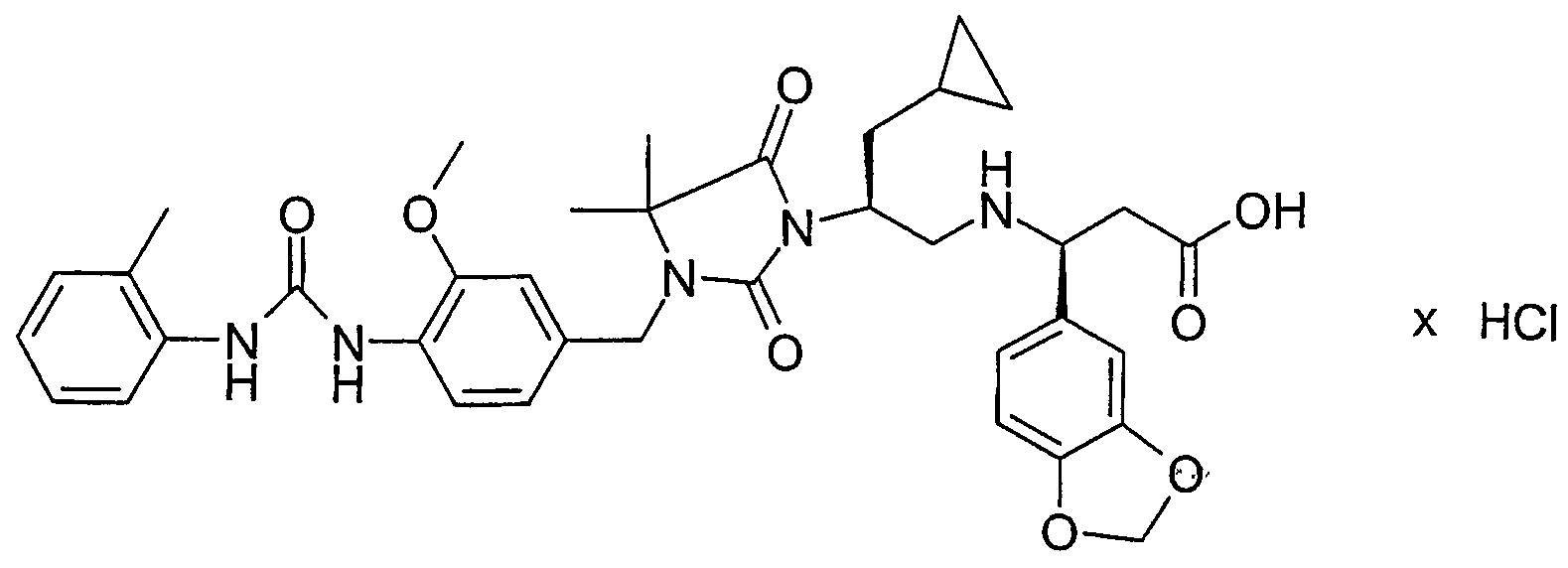 Гидрохлорид (S)-3-((S)-2-(4,4-диметил-3-(4-(3-(2-метилфенил)уреидо)-3-метоксибензил)-2,5-диоксоимидазолидин-1-ил)-3-циклопропилпропиламино)-3-(3,4-метилендиоксифенил)пропионовой кислоты