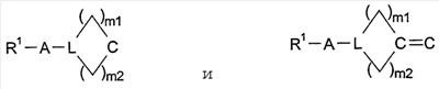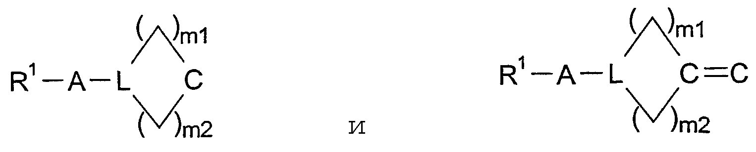 могут содержать один или два одинаковых или различных кольцевых гетероатома из ряда азота, кислорода и серы, могут быть насыщенными или мононенасыщенными или полиненасыщенными и могут быть замещены 1, 2 или 3 одинаковыми или различными заместителями R13 и/или одним или двумя оксозаместителями и/или тиоксозаместителями, и в которых L представляет C(R13) или N, и в которых m1 и m2 равны, независимо друг от друга, одному из чисел 0, 1, 2, 3, 4, 5 и 6, но сумма m1 + m2 равна одному из чисел 1, 2, 3, 4, 5 или 6;