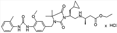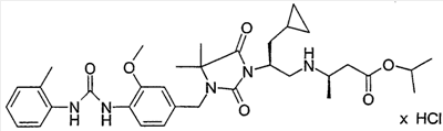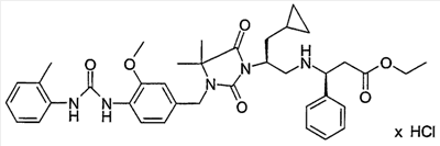 Гидрохлорид изопропил-(S)-3-((S)-2-(4,4-диметил-3-(4-(3-(2-метилфенил)уреидо)-3-метоксибензил)-2,5-диоксоимидазолидин-1-ил)-3-циклопропилпропиламино)-3-(3,4-метилендиоксифенил)пропионата