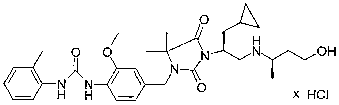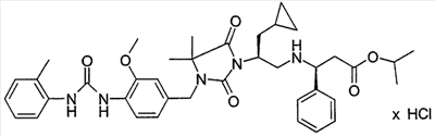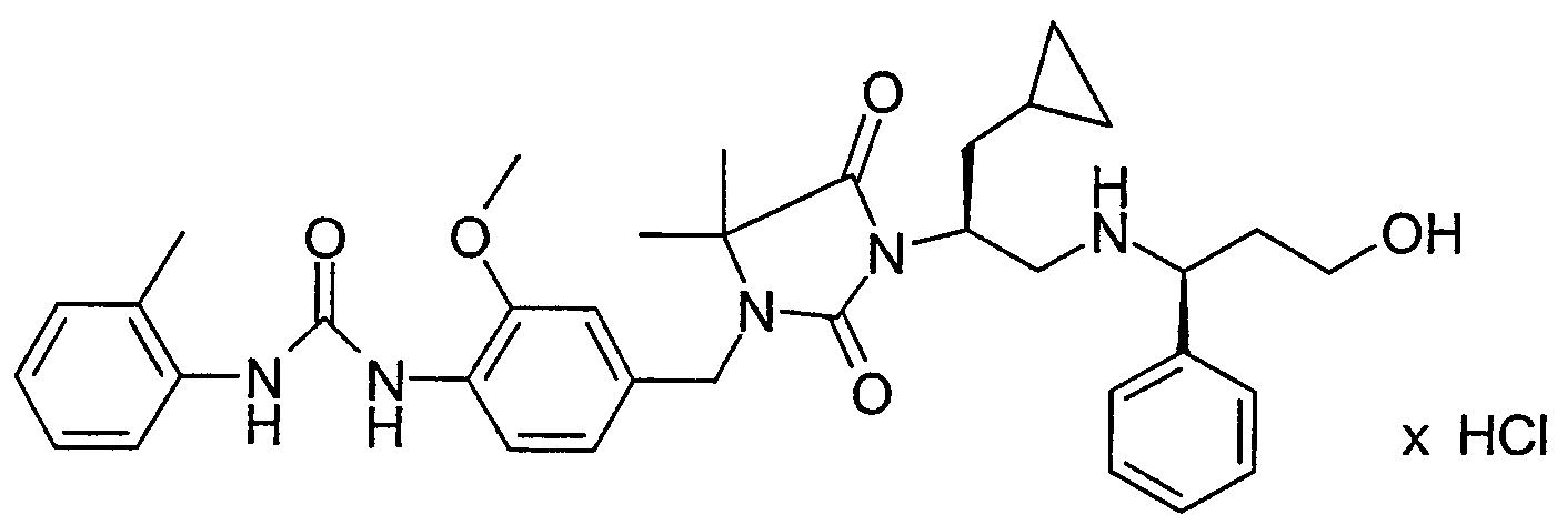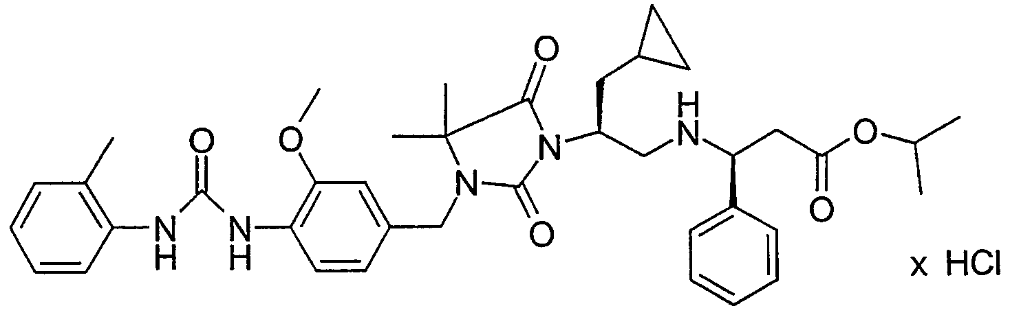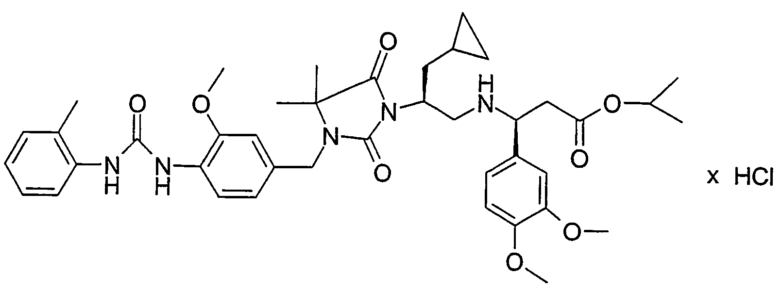 Гидрохлорид изопропил-(S)-3-((S)-2-(4,4-диметил-3-(4-(3-(2-метилфенил)уреидо)-3-метоксибензил)-2,5-диоксоимидазолидин-1-ил)-3-циклопропилпропиламино)-3-(3,4-диметоксифенил)пропионата