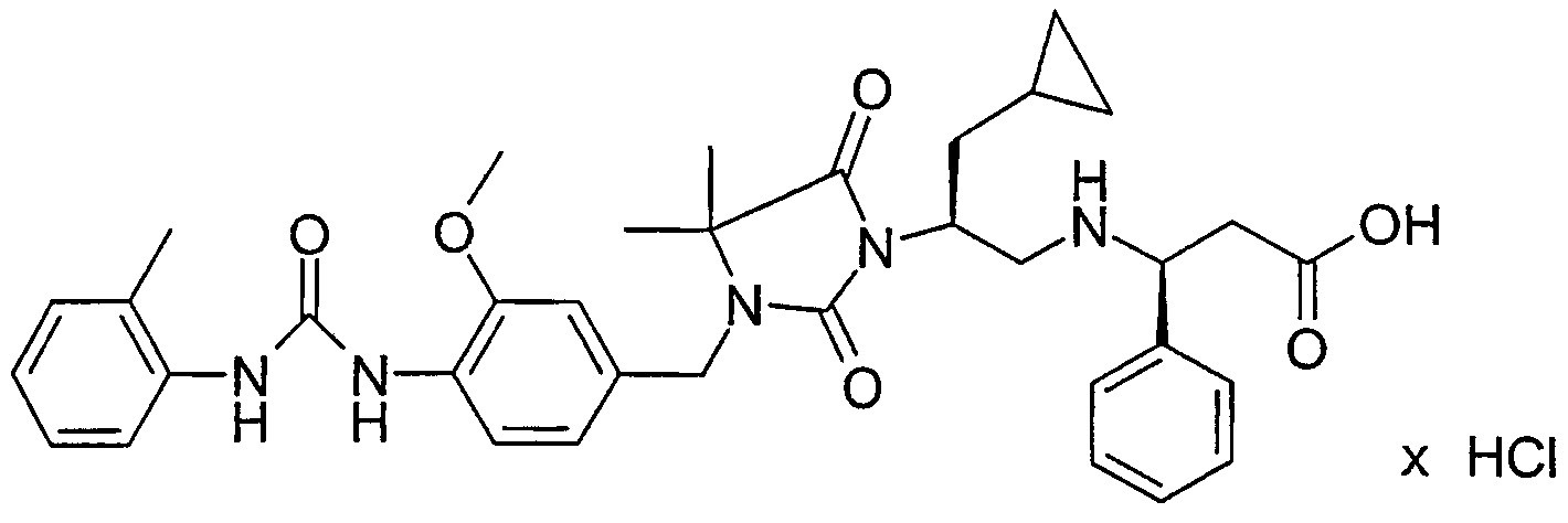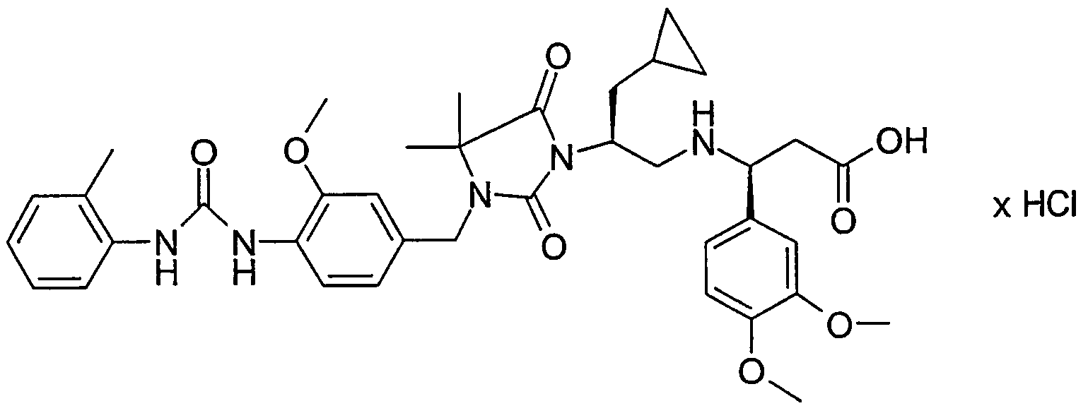Гидрохлорид (S)-3-((S)-2-(4,4-диметил-3-(4-(3-(2-метилфенил)уреидо)-3-метоксибензил)-2,5-диоксоимидазолидин-1-ил)-3-циклопропилпропиламино)-3-(3,4-диметоксифенил)пропионовой кислоты