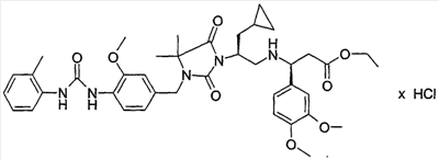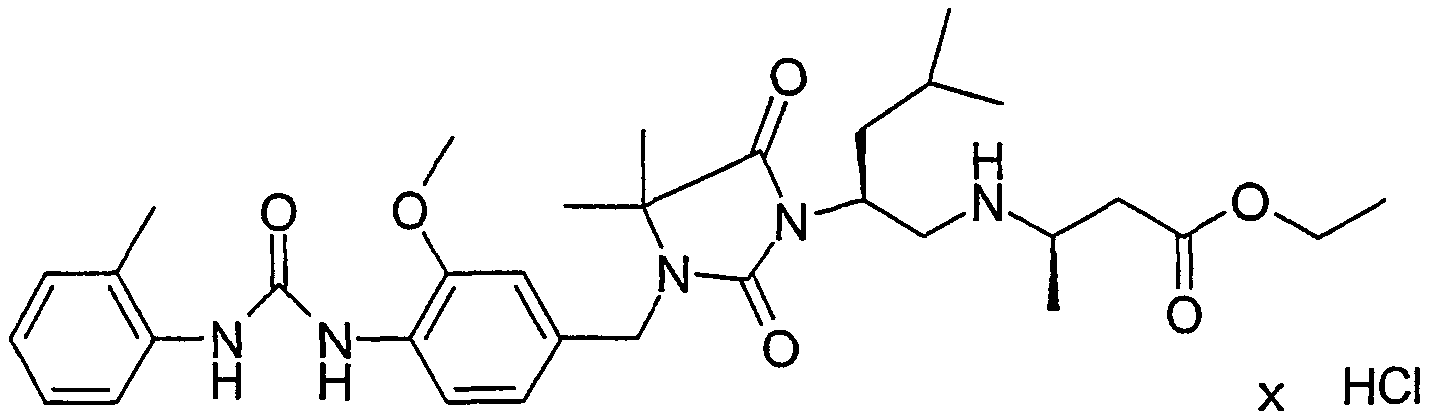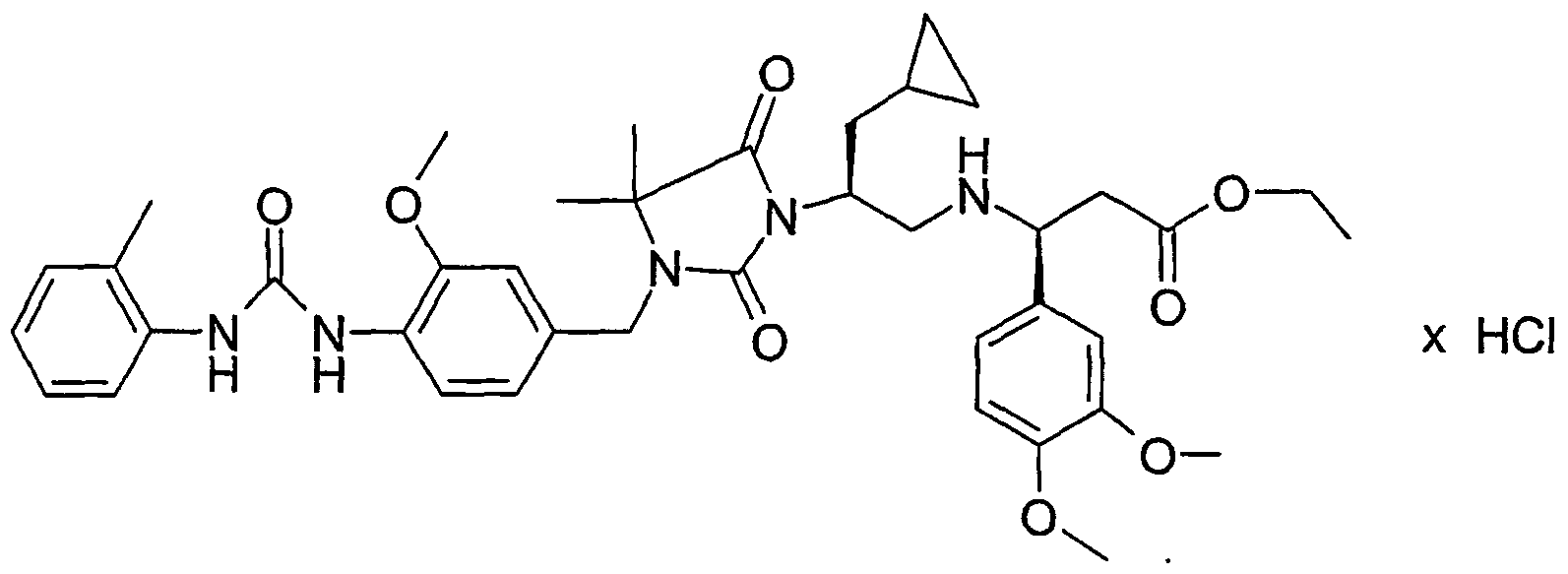 Гидрохлорид этил-(S)-3-((S)-2-(4,4-диметил-3-(4-(3-(2-метилфенил)уреидо)-3-метоксибензил)-2,5-диоксоимидазолидин-1-ил)-3-циклопропилпропиламино)-3-(3,4-диметоксифенил)пропионата