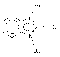Задачей изобретения, которая определяет его назначение, является создание новых препаратов, обладающих выраженной фармакологической активностью, на основе катиона 1,3-диалкилбензимидазолия, где в качестве аниона выступают моногалогениды (например: фторид, хлорид, бромид, йодид), а не полигалогениды (например: трийодид, дибромйодид и т.п.).
