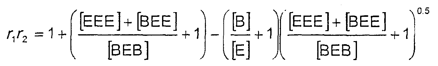 где B, C, D, F, G, I, L являются интегралами пиков в 13С-ЯМР спектре (пик последовательности ЕЕЕ при 29,9 частей на тысячу в качестве ссылки). Распределение данных пиков проведено в соответствии с J.C. Randall, Macromol. Chem. Phys.,C29, 201 (1989) и представлено в таблице А (номенклатура в соответствии с C.J. Carman, R.A. Harrington и C.E. Wilkes Macromolecules, 10,536 (1977)).