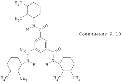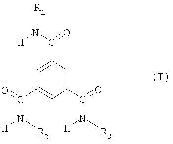 Настоящее изобретение относится к композиции, содержащей кристаллическую полипропиленовую смолу и одно или более производных тримезиновой кислоты, действующих в качестве зародышеобразующего агента для образования Известно, что кристаллический полипропилен может существовать в виде В обычных условиях обработки В патенте US-B-6235823 описано использование соединений диамида в качестве агентов зародышеобразования В патентах ЕР-А-865914 и ЕР-А-865911 описаны полиолефиновые пленки. Композиции смолы на основе полибутена-1 описаны в патенте ЕР-А-776933, а пористые ориентированные изделия из полипропиленовой смолы описаны в патенте ЕР-А-632095. Настоящее изобретение прежде всего относится к композиции, содержащей (1) кристаллическую полипропиленовую смолу и (2) один или более инициаторов зародышеобразования